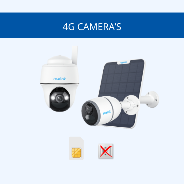 Een 4G camera werkt met een simkaart en is ideaal voor het beveiligen van afgelegen plekken zonder WiFi of stroom. Denk aan bouwplaatsen, boerderijen etc. Camera's hebben ingebouwde batterij en zijn optioneel te gebruiken met zonnepaneel voor duurzaam en milieuvriendelijk opladen.