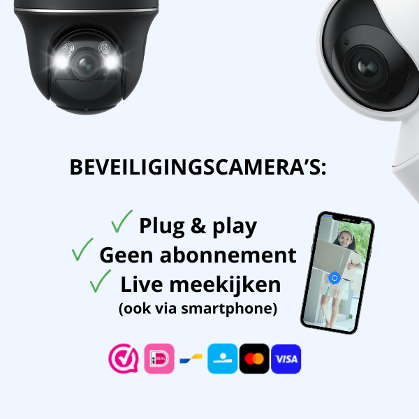 CamSolute levert beveiligingscamera's voor consumenten en bedrijven in Nederland & België. Met een ruim assortiment buitencamera's én camera's voor binnen is er altijd een oplossing voor jouw beveiligingbehoefte. Of je nu kiest voor draadloze beveiliging of bekabelde camerabewaking: CamSolute levert zowel WiFi camera's als PoE camera's en is officieel dealer van Reolink. Alle camera's uit ons assortiment hebben persoonsdetectie en voertuigdetectie. Beelden kun je altijd bekijken via de gratis app op je smartphone of via je pc/Mac. Ben je op zoek naar een complete oplossing? Bekijk dan onze camerabewaking sets compleet met recorder en camera's en accessoires of bouw je eigen beveiligingssysteem.