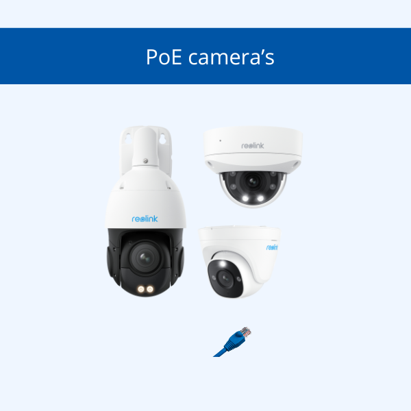 Kies voor een stabiele beveiliging via PoE. Niet afhankelijk van WiFi-signaal, maar altijd online via een stabiele kabelaansluiting die zowel stroom als data transporteert.