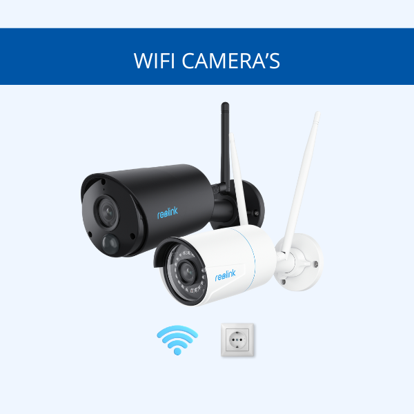 Bekijk ons ruime assortiment camera's met WiFi voor binnen- en buitengebruik. Eenvoudig te installeren.